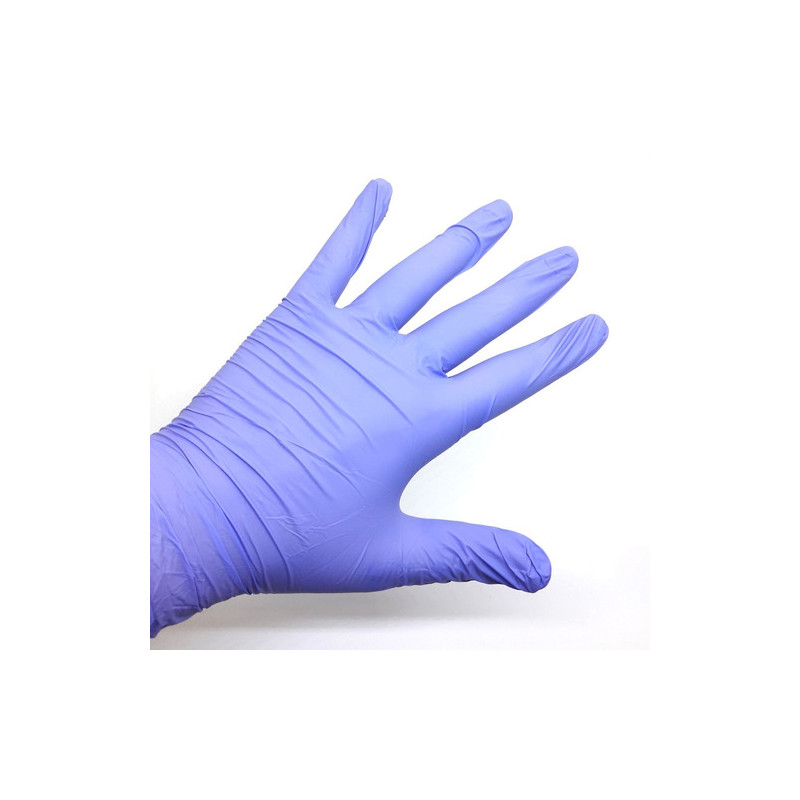 Guante de Nitrilo Violeta desechable Sin Polvo 5.0grs Para Examen, Producto EPI Cat. III. Ambidiestro, Suave al Tanto y Puño Reforzado.