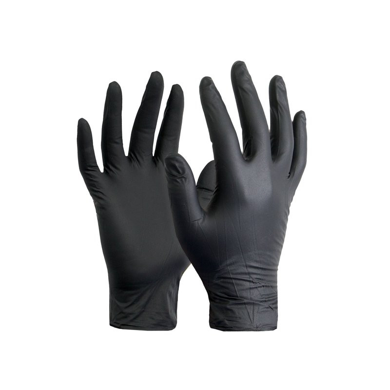 Guante de Nitrilo Negro desechable Sin Polvo 6.1grs Para Examen, Producto EPI Cat. III. Ambidiestro, Suave al Tanto y Puño Reforzado.